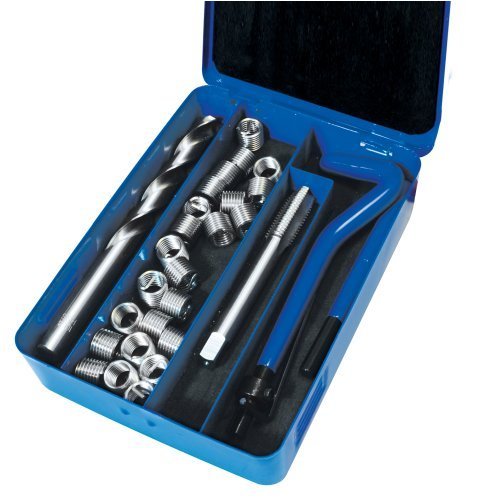 Inclusief alles om binnendraad in staal, gietijzer en aluminium te repareren. Sprung insert coils creëren een sterkere draad dan het originele metaal. Kit bevat HSS-kraan, draaiboor, coil driver, tang remover en reserve inzetstukken.