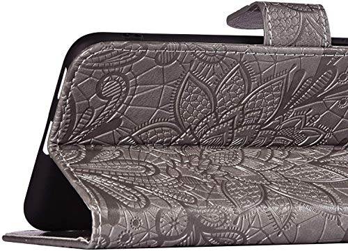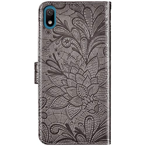 Specification: Ysimee beschermhoes voor Huawei Y5 2019/Honor 8S, bloemenmotief uit kant, leer grijs.
