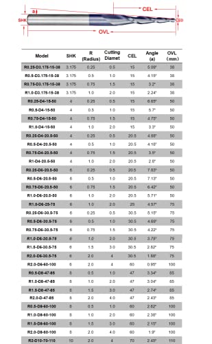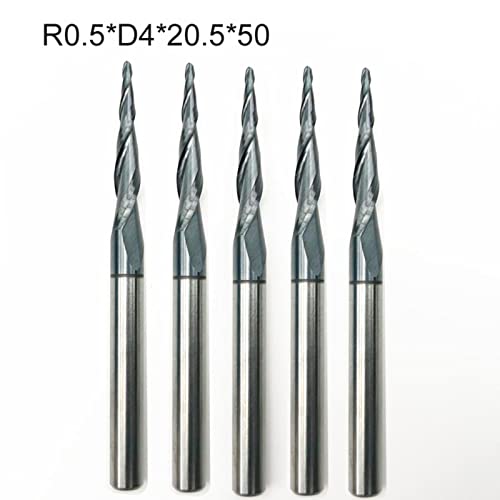 Specification: MOOCO MORNING 10 stks HRC55 Tapered Ball Neus End Mill Wolfraam hardmetaal Gecoat kegel cnc frees R0.5xD4x20.5x50mm 3D gravure bit