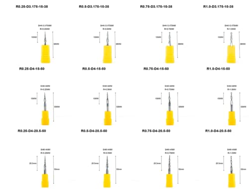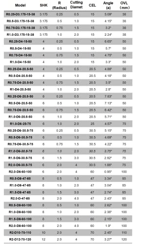 Snijstraal (R): 0.25,0.5,0.75,1.0,1.5,2.0mm