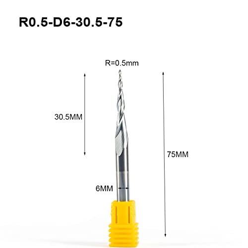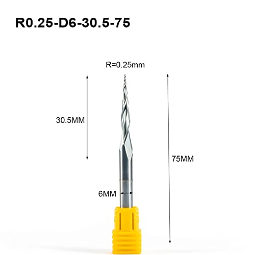 Specification: MOOCO MORNING 6 st SHK 6mm R0.25-R1.0 Taper Ball Neus End Mill Wolfraam hardmetaal Gecoat kegel cnc frees houtbewerking graveren bit