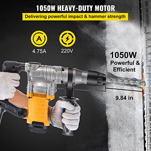 VEVOR Boorhamer 1″ SDS Boormachine 9,5 A Professional Boorhamer 1050 W SDS Plus Boorhamer Gereedschap, 4-Mode Combinatie Elektrische Boorhamer, 850RPM Combihamer met Koffer, 220V Roterende Hamerboor