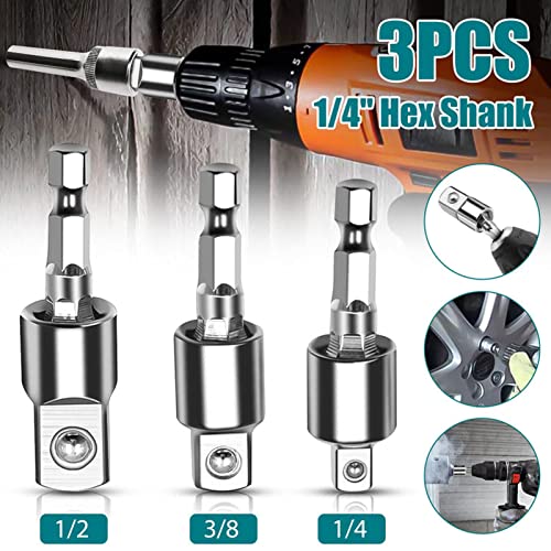 5 Pcs Boor Adapter Socket,Adapters voor slagschroevendraaiers | 3 stuks 1/4″ 3/8″ 1/2″ gewone slagschroevendraaier-verlengbits, 360 graden draaibare zeskantschacht Xming